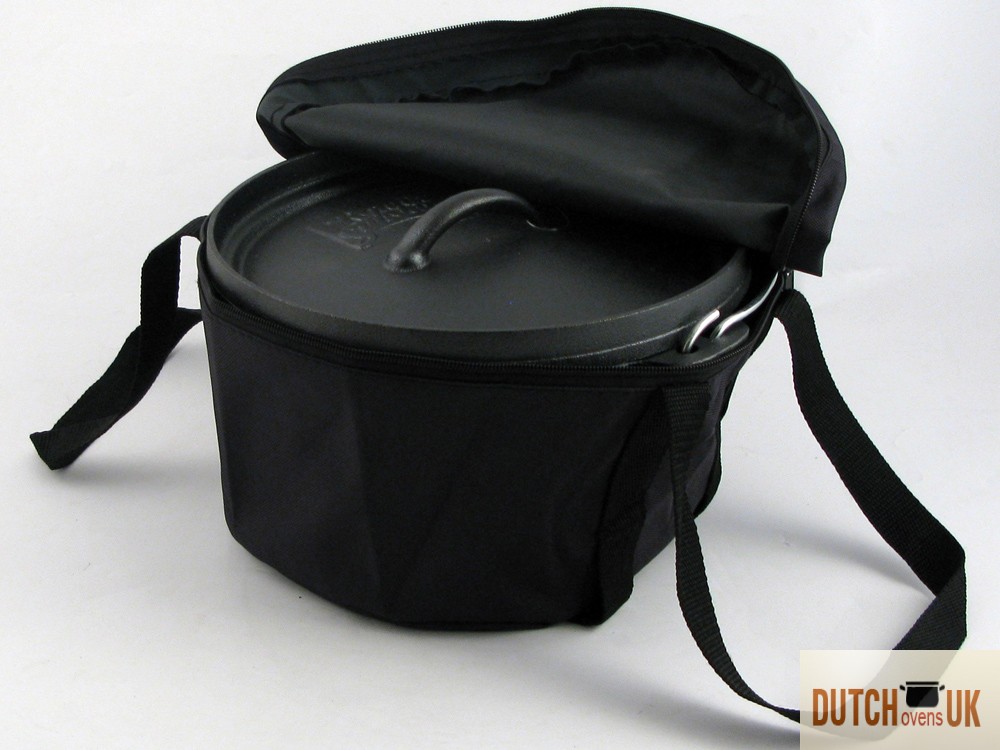 Available in sizes to fit all three different Dutch Ovens. The two handles go all the way around the base of the bag for secure and easy carrying and handling. The best way to carry your dutch oven to and from the forest.